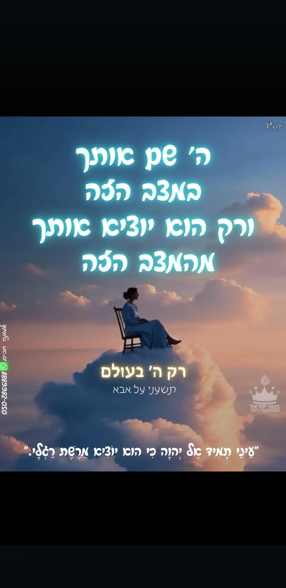 תודה רבה לך בורא עולם אבא יקר אני יודעת שאתה תמיד איתי ושאתה נמצא כאן לא סתם שמת אותי במקום הזה שאני נמצאת בו… קרא עוד>